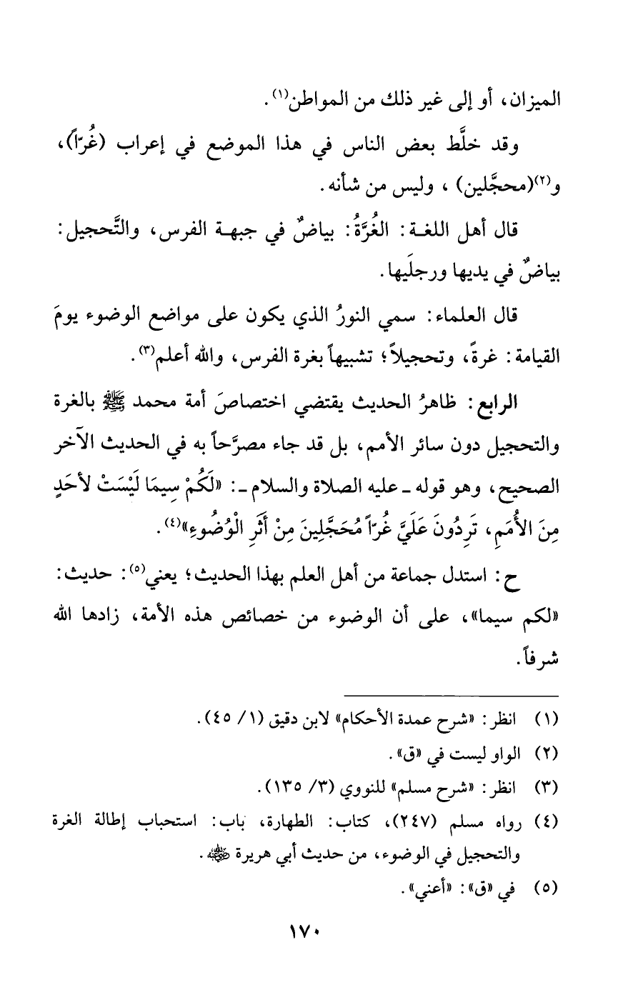 (¬4) رواه مسلم (247)، كتاب: الطهارة، باب: استحباب إطالة الغرة والتحجيل في الوضوء، من حديث أبي هريرة - رضي الله عنه -.