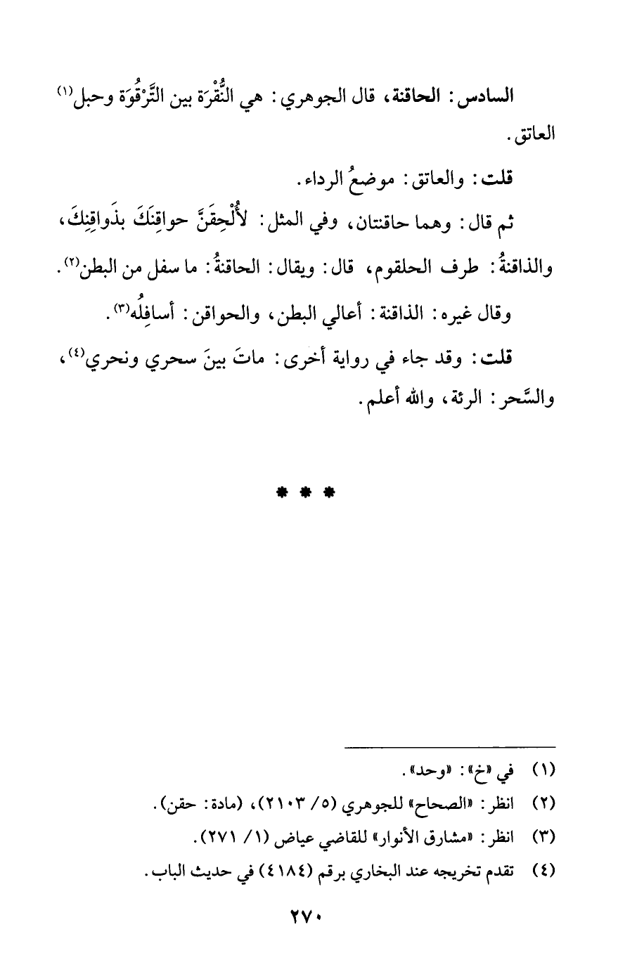 (¬2) انظر: «الصحاح» للجوهري (5/ 2103)، (مادة: حقن).