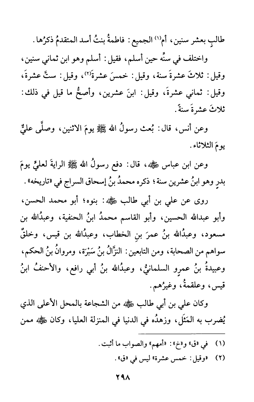 واختلف في سنه حين أسلم، فقيل: أسلم وهو ابن ثمان سنين، وقيل: ثلاث عشرة سنة، وقيل: خمس عشرة (¬2)،