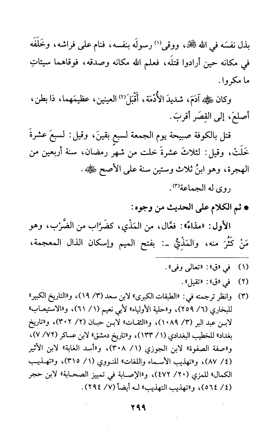 (¬3) وانظر ترجمته في: «الطبقات الكبرى» لابن سعد (3/ 19)، و «التاريخ الكبير» للبخاري (6/ 259)، و «حلية الأولياء» لأبي نعيم (1/ 61)، و «الاستيعاب» لابن عبد البر (3/ 1089)، و «الثقات» لابن حبان (2/ 302)، و «تاريخ بغداد» للخطيب البغدادي (1/ 133)، و «تاريخ دمشق» لابن عساكر (72/ 7)، و «صفة الصفوة» لابن الجوزي (1/ 308)، و «أسد الغابة» لابن الأثير (4/ 87)، و «تهذيب الأسماء واللغات» للنووي 01/ 315)، و «تهذيب الكمال» للمزي (20/ 472)، و «الإصابة في تمييز الصجحابة» لابن حجر (4/ 564)، و «تهذيب التهذيب» له أيضا (7/ 294).