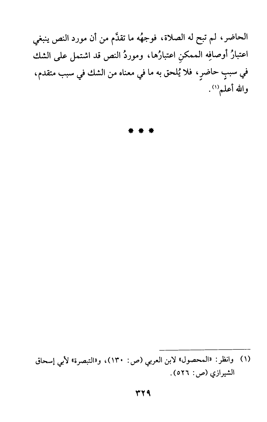 (¬1) وانظر: «المحصول» لابن العربي (ص: 130)، و «التبصرة» لأبي إسحتق الشيرازي (ص: 526).