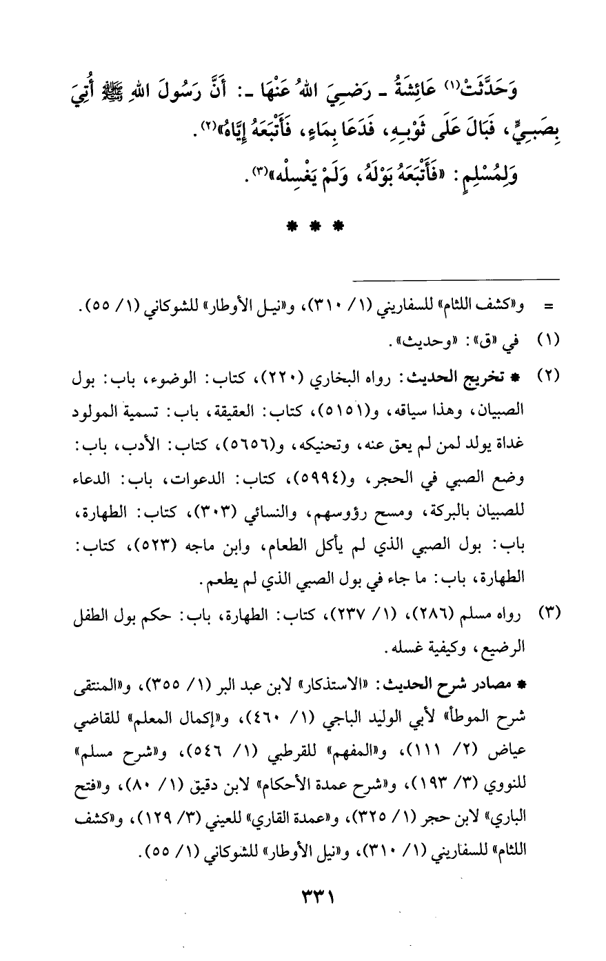(¬3) رواه مسلم (286)، (1/ 237)، كتاب: الطهارة، باب: حكم بول الطفل الرضيع، وكيفة غسله.