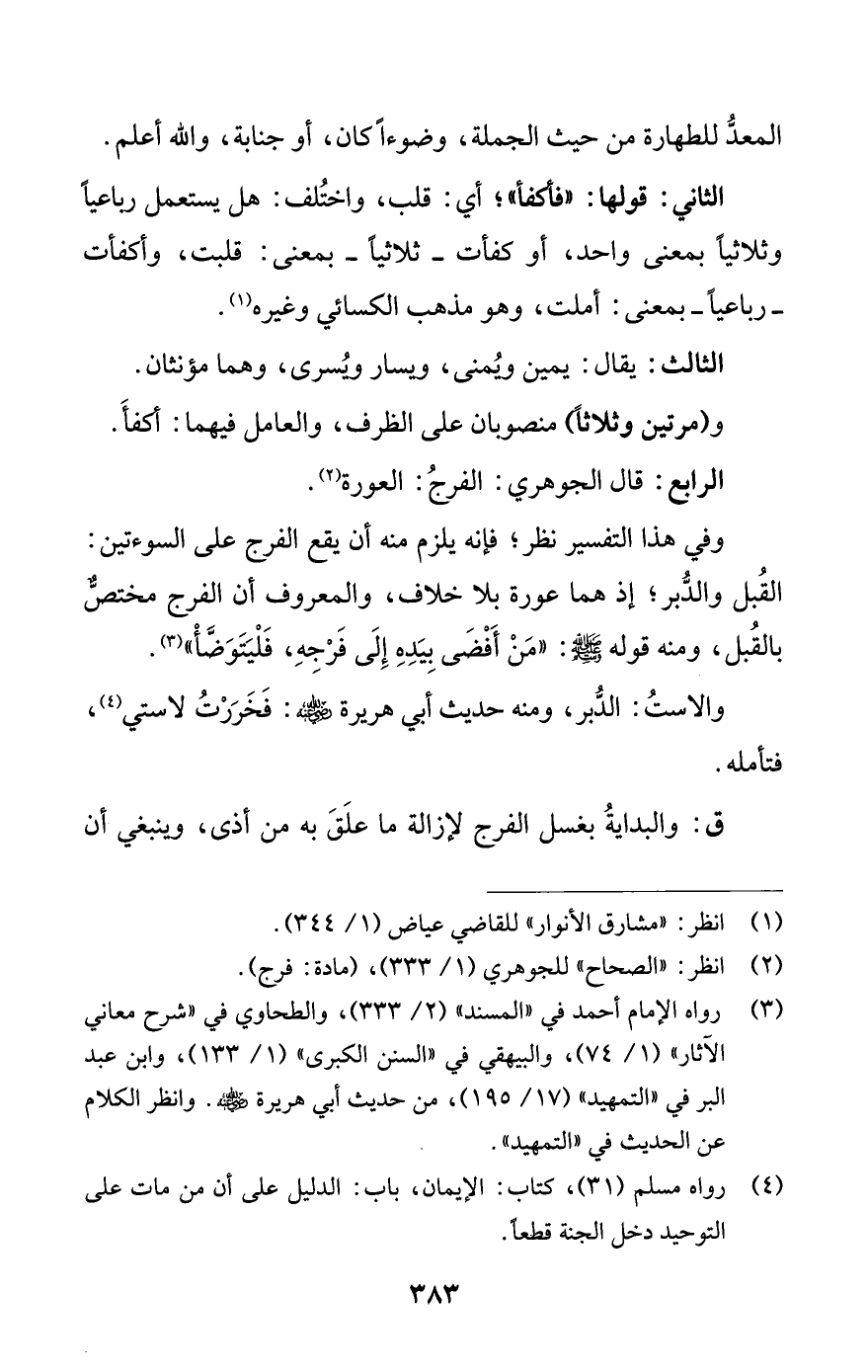 (¬3) رواه الإمام أحمد في المسند (2/ 333)، والطحاوي في شرح معاني الآثار (1/ 74)، والبيهقي في السنن الكبرى (1/ 133)، وابن عبد البر في التمهيد (17/ 195)، من حديث أبي هريرة - رضي الله عنه -. وانظر الكلام عن الحديث في التمهيد.