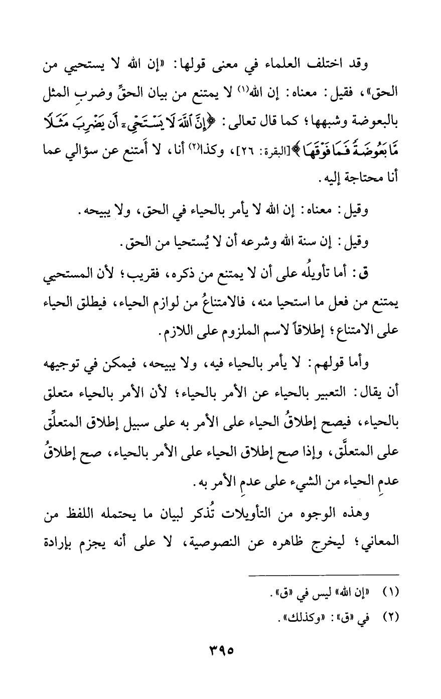 وقيل: معناه: إن الله لا يأمر بالحياء في الحق، ولا يبيحه.