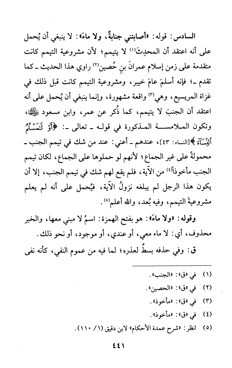 (¬5) انظر: شرح عمدة الأحكام لابن دقيق (1/ 110).