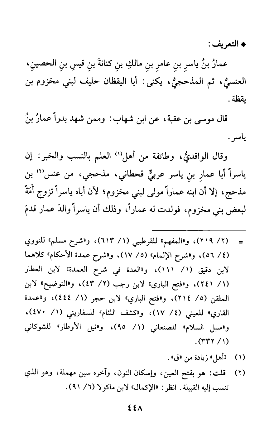 وقال الواقديُّ، وطائفة من أهل (¬1) العلم بالنسب والخبر: إن ياسرا أبا عمار بن ياسر عربيٌّ قحطاني، مذحجي، من عنس (¬2) بن مذحج، إلا أن ابنه عمارا مولى لبني مخزوم؛ لأن أباه ياسرا تزوج أمة لبعض بني مخزوم، فولدت له عمارا، وذلك أن ياسرا والد عمار قدم