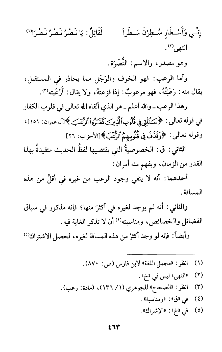 (¬3) انظر: «الصتحاح» للجوهريب (1/ 136)، (مادة: رعب).