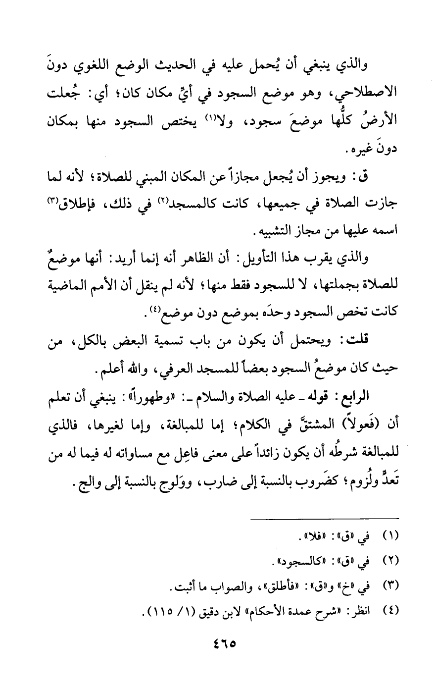 (¬4) انظر: «شرح عمدة الأحكام» لابن دقيق (1/ 115).