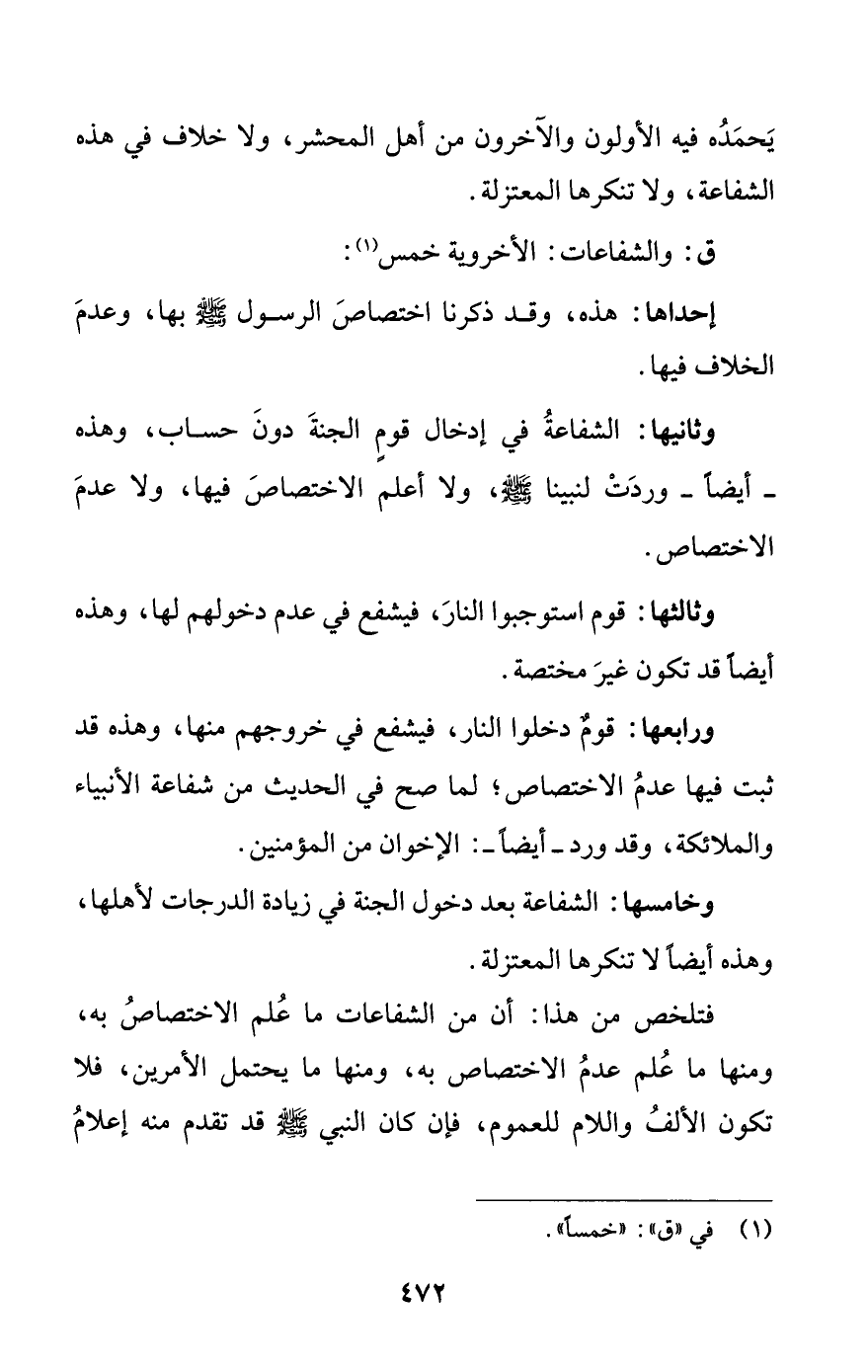 ق: والشفاعات: الأخروية خمس (¬1):