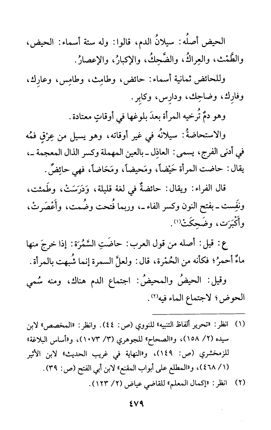 وللحائض ثمانية أسماء: حائض، وطامث، وطامس، وعارك، وفارك، وضاحك، ودارس، وكابر.