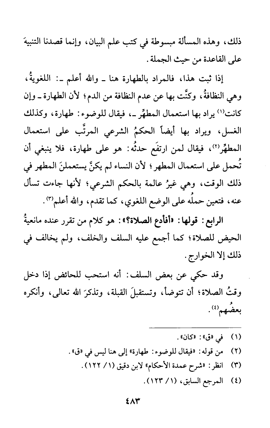 (¬3) انظر: شرح عمدة الأحكام لابن دقيق (1/ 122).