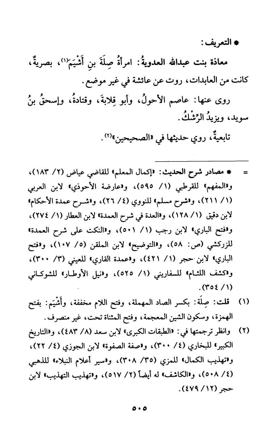 (¬2) وانظر ترجمتها في: الطبقات الكبرى لابن سعد (8/ 483)، والتاريخ الكبير للبخاري (4/ 300)، وصفة الصفوة لابن الجوزي (4/ 22)، وتهذيب الكمال للمزي (35/ 308)، وسير أعلام النبلاء للذهبي (4/ 508)، والكاشف له أيضا (2/ 517)، وتهذيب التهذيب لابن حجر (12/ 479).