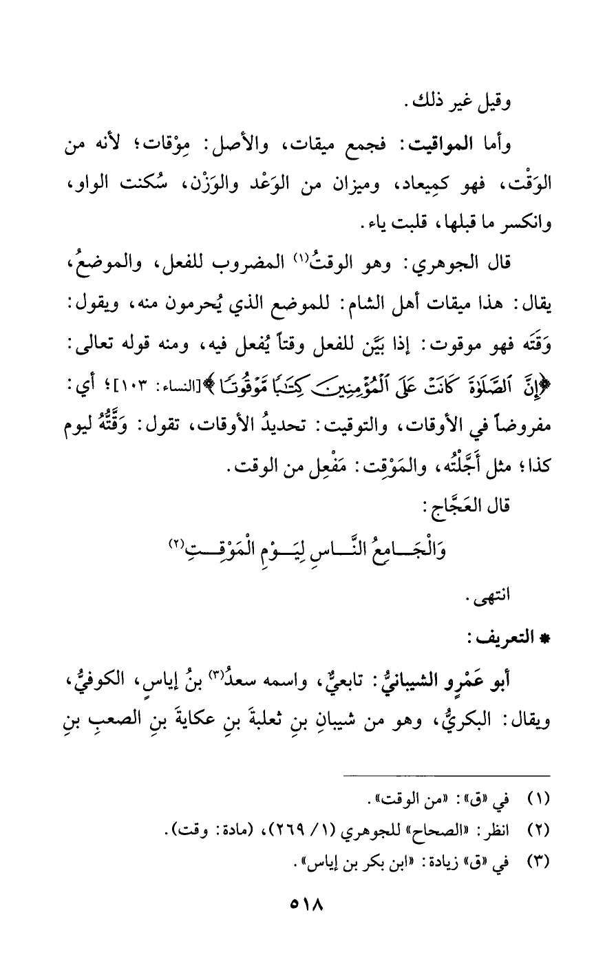 (¬2) انظر: الصحاح للجوهري (1/ 269)، (مادة: وقت).