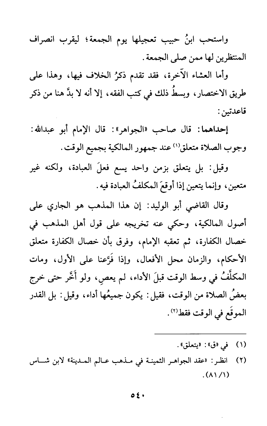 (¬2) انظر: «عقد الجواهر الثميننة في مذهب عالم المدينة» لابن شاس (1/ 81).