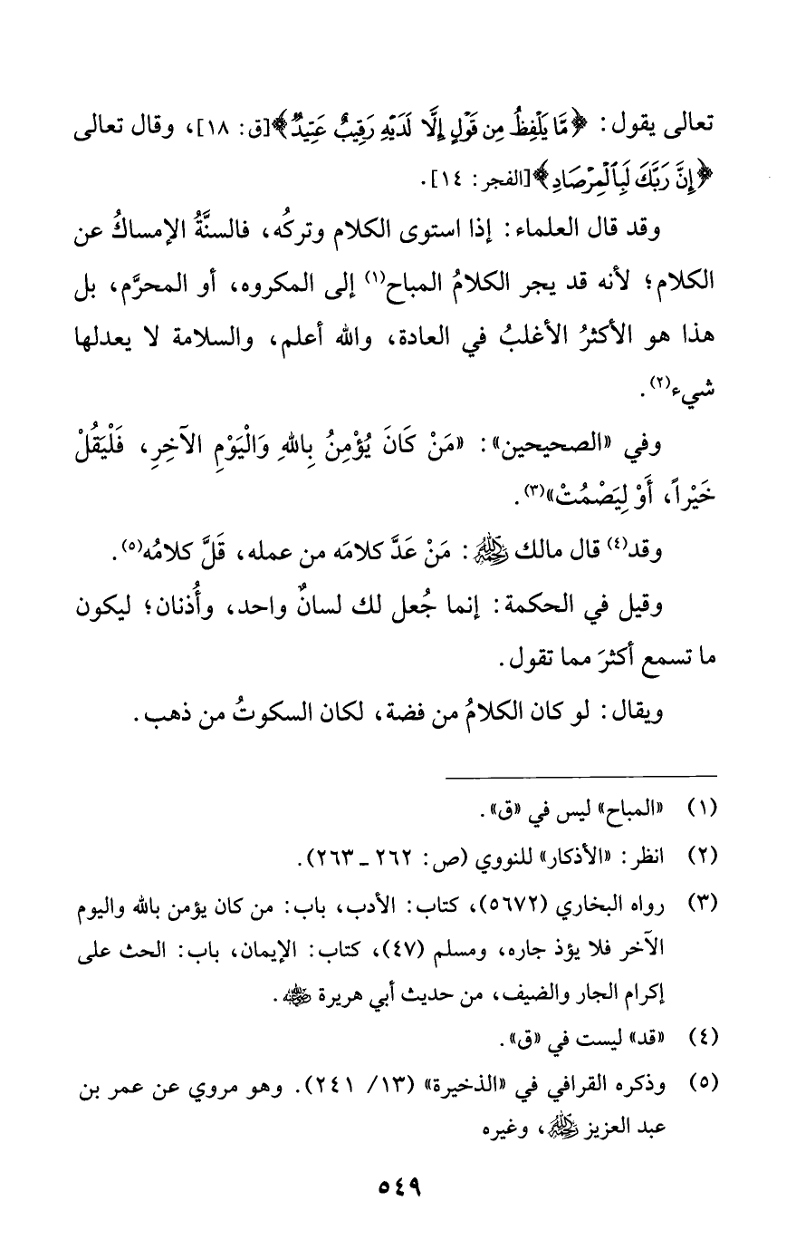 وقد (¬4) قال مالك -رحمه الله-: من عد كلامه من عمله، قلّ كلامه (¬5).