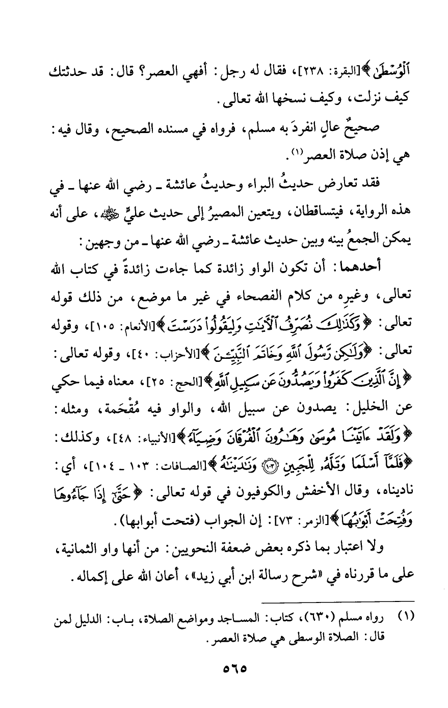 (¬1) رواه مسلم (630)، كتاب: المساجد ومواضع الصلاة، باب: الدليل لمن قال: الصلاة الوسطى هي صلاة العصر.