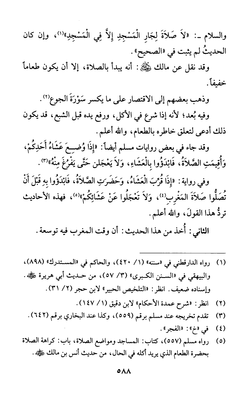 (¬5) رواه مسلم (557)، كتاب: المساجد ومواضع الصلاة، باب: كراهة الصلاة بحضرة الطعام الذي يريد أكله في الحال، من حديث أنس بن مالك - رضي الله عنه -.