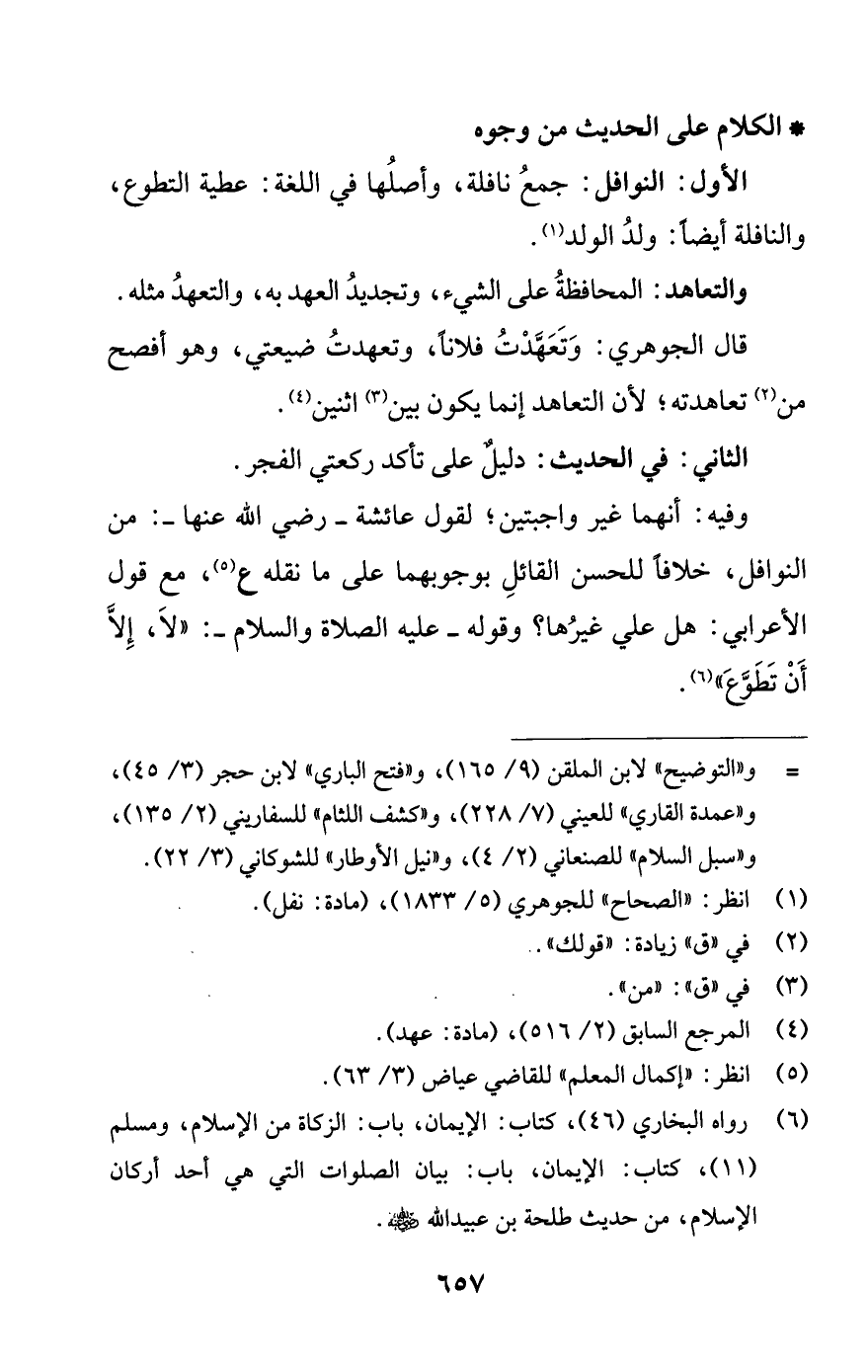 (¬6) رواه البخاري (46)، كتاب: الإيمان، باب: الزكاة من الإسلام، ومسلم (11)، كتاب: الإيمان، باب: بيان الصلوات التي هي أحد أركان الإسلام، من حديث طلحة بن عبيد الله - رضي الله عنه -.