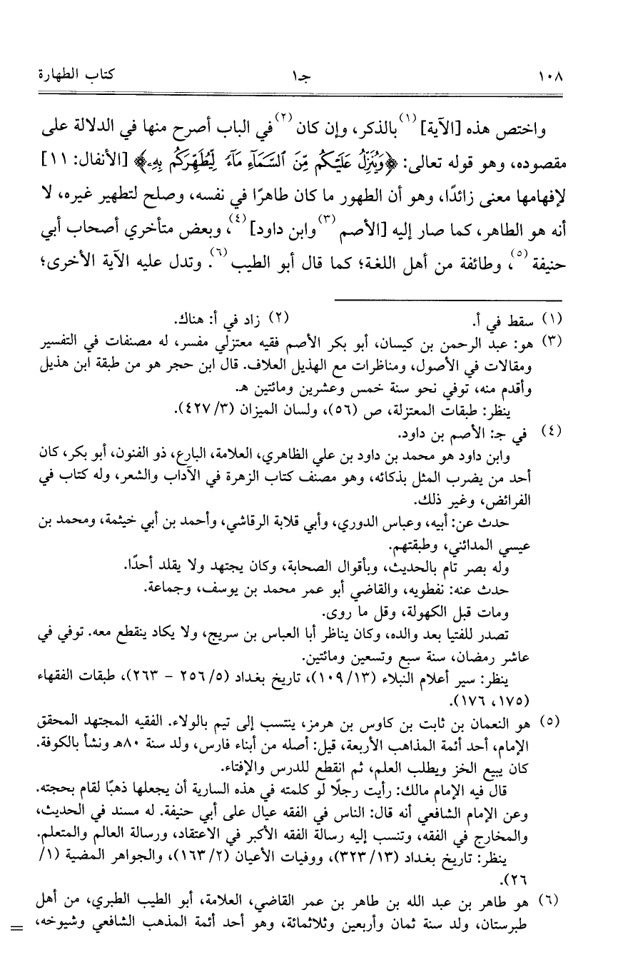 واختص هذه الآية بالذكر، وإن كان في الباب أصرح منها في الدلالة على مقصوده, وهو قوله تعالى: {وينزل عليكم من السماء ماء ليطهركم به} لإفهامها معنى زائدا, وهو أن الطهور ما كان طاهرا في نفسه، وصلح لتطهير غيره, لا أنه هو الطاهر, كما صار إليه الأصم وابن داوود، وبعض متأخري أصحاب أبي حنيفة، وطائفة من أهل اللغة، كما قال أبو الطيب. وتدل عليه الآية الأخرى؛