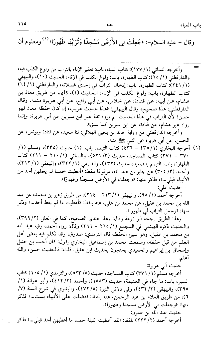 وقال عليه السلام: (جعلت لي الأرض مسجدا وترابها طهورا) ومعلوم أن