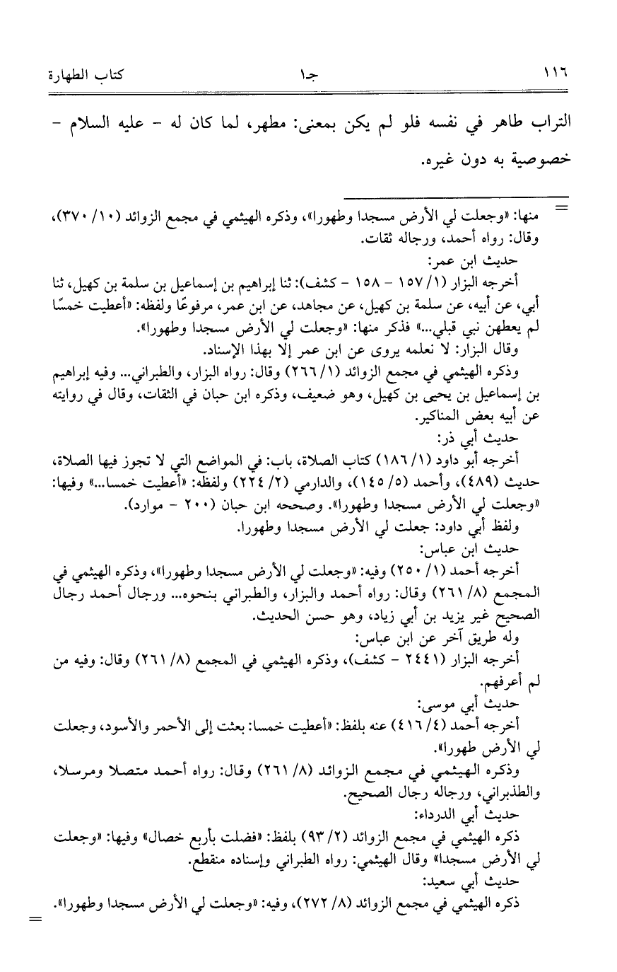 التراب طاهر في نفسه, فلو لم يكن بمعنى مطهر، لما كان له -عليه السلام- خصوصية به دون غيره.