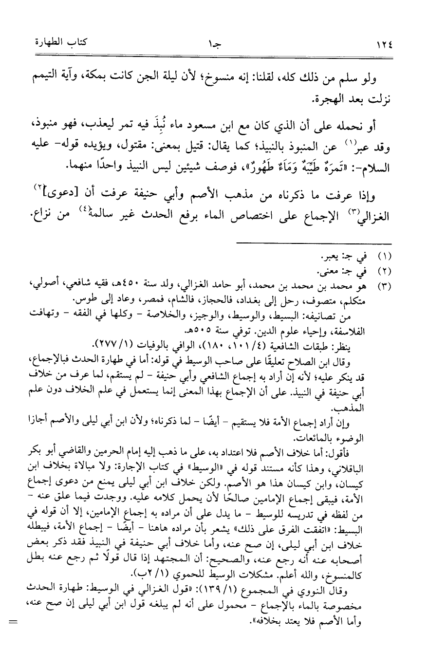 الغزالي الإجماع على اختصاص الماء برفع الحدث غير سالمة من نزاع.