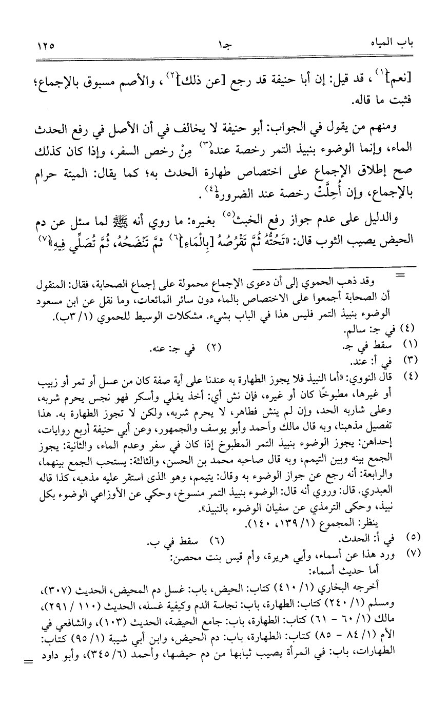 ومنهم من يقول في الجواب: أبو حنيفة لا يخالف في أن الأصل في رفع الحدث