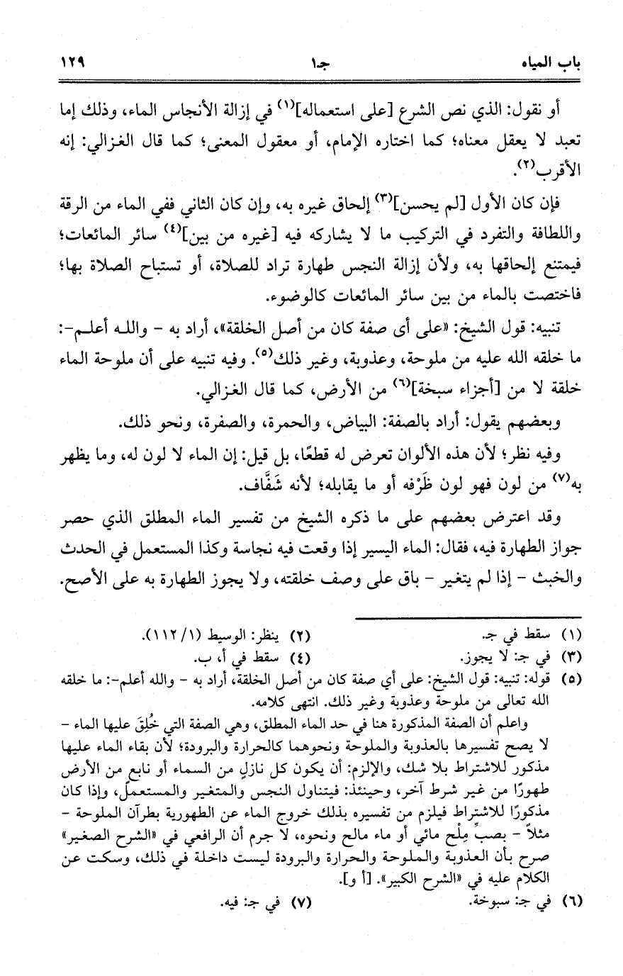 وقد اعترض بعضهم على ما ذكره الشيخ من تفسير الماء المطلق الذي حصر