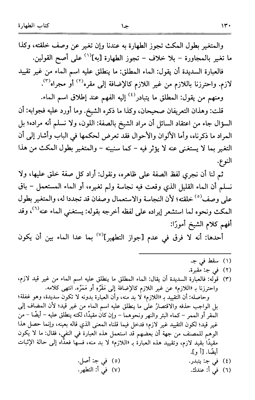 فالعبارة السديدة أن يقول: الماءالمطلق: ماينطلق عليه اسم الماء من غير تقييد