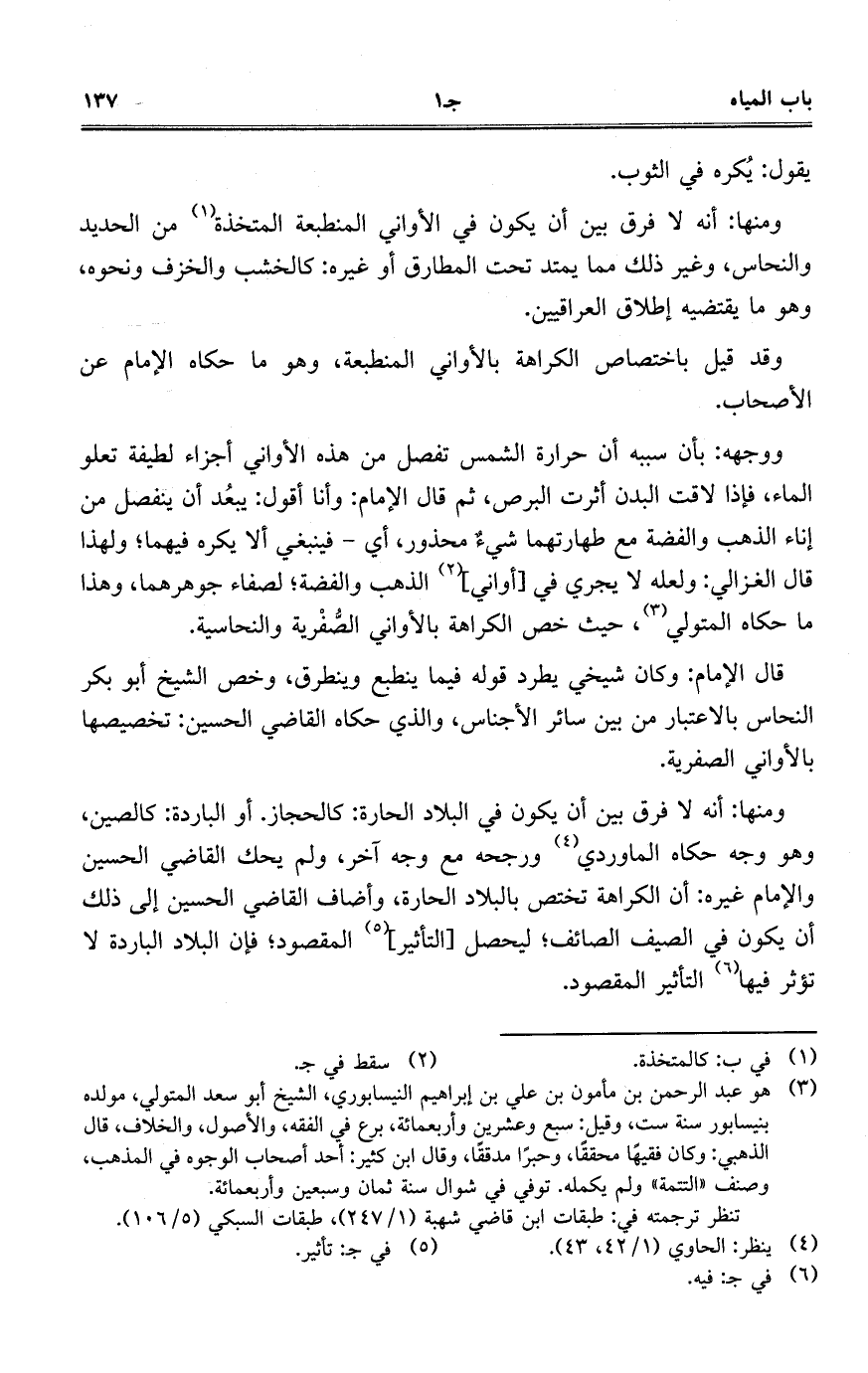 يقول: يكره في الثوب. ومنها: أنه لا فرق بين أن يكون في الأواني المنطبعة المتخذة من الحديد