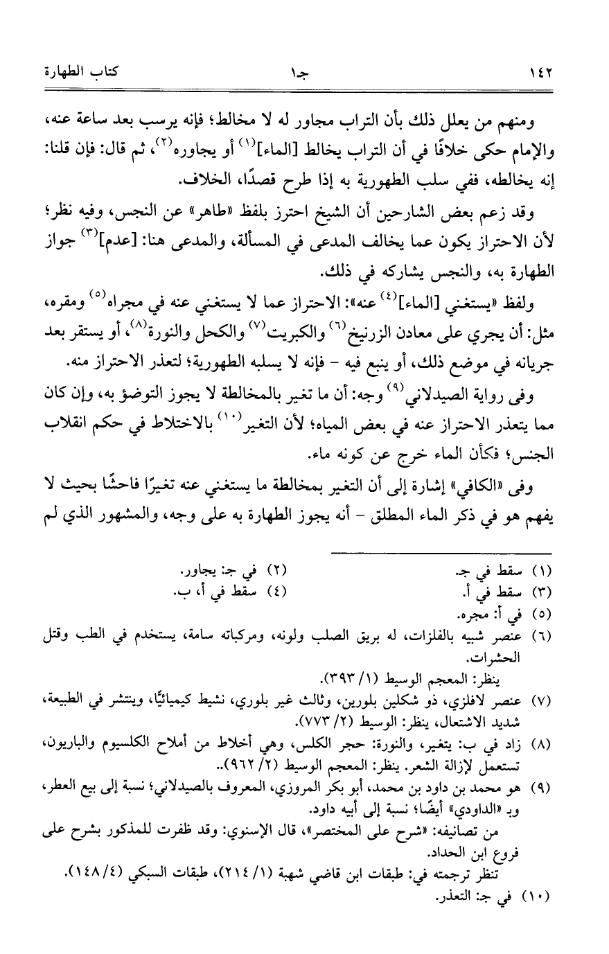 وفي "الكافي" إشارة إلى أن التغير بمخالطة ما يستغني عنه تغيرا فاحشا بحيث لا