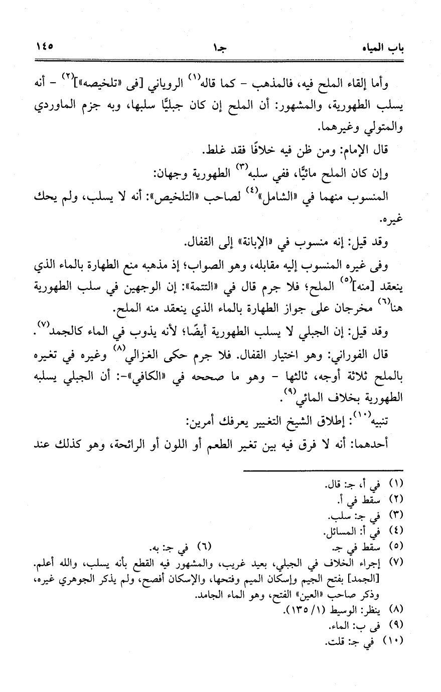يسلب الطهوية، والمشهور: أن الملح إن كان جبليا سلبها، وبه جزم الماوردي