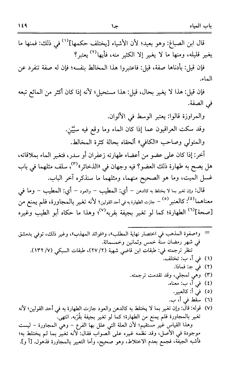 آخر: إذا كان على عضو من أعضاء طهارته زعفران أو سدر، فتغير الماء بملاقاته،