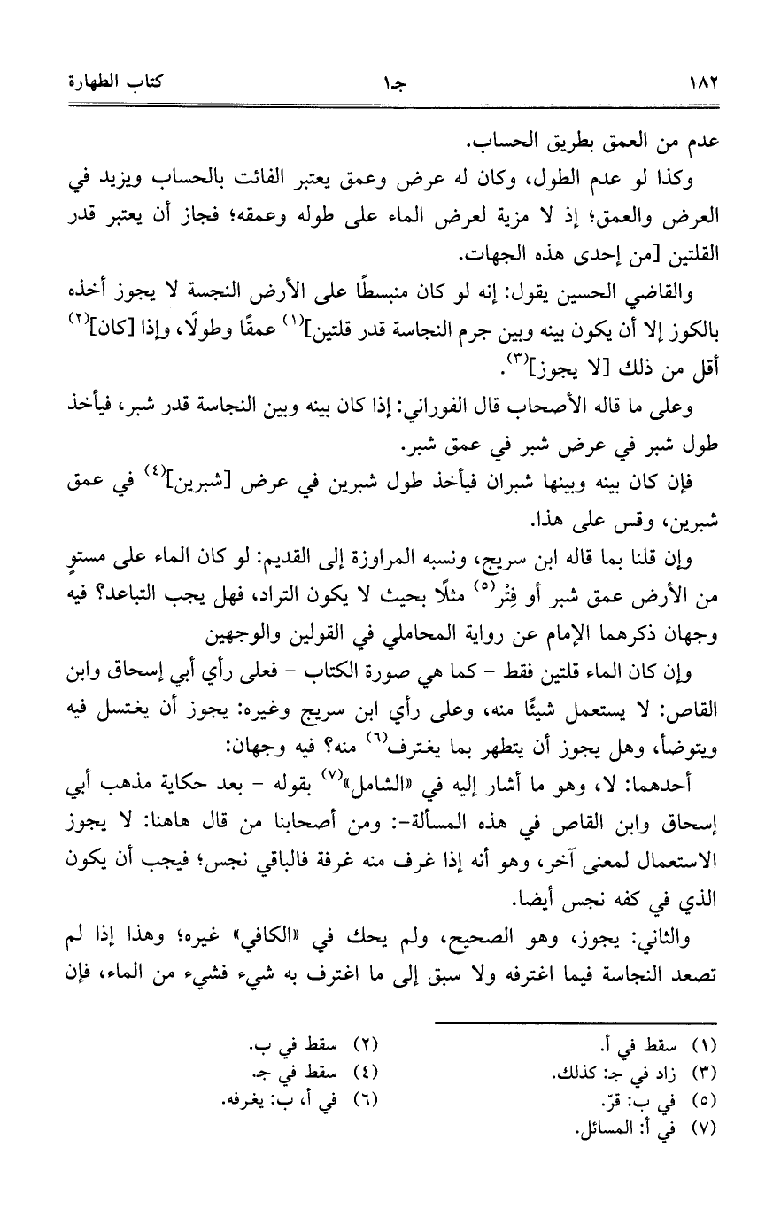 العرض والعمق؛ إذ لا مزية لعرض الماء على طوله وعمقه؛ فجاز أن يعتبر قدر