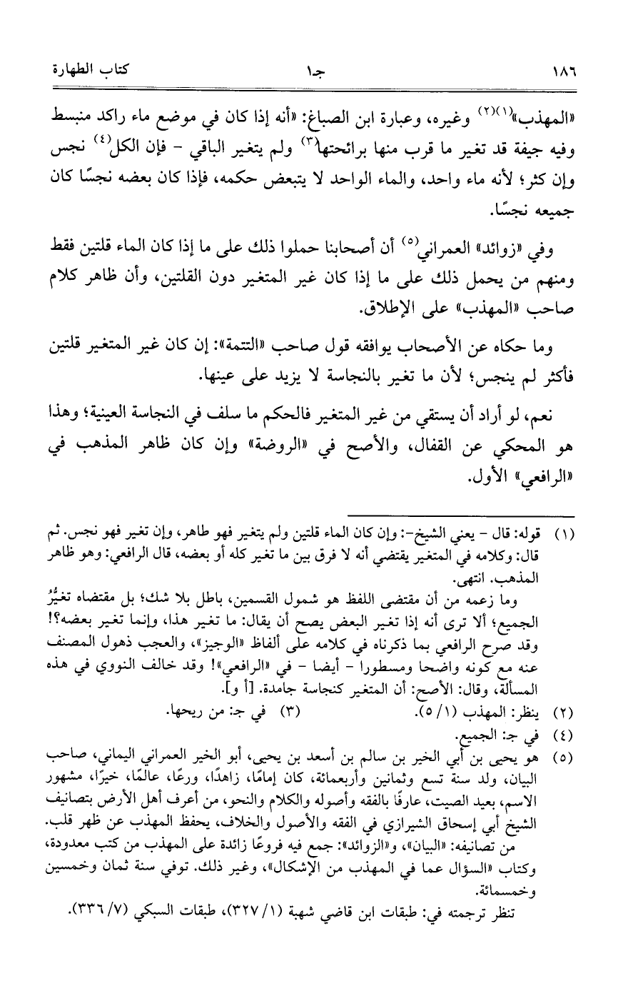 وفي "زوائد" العمراني أن أصحابنا حملوا ذلك على إذا ما كان الماء قلتين فقط
