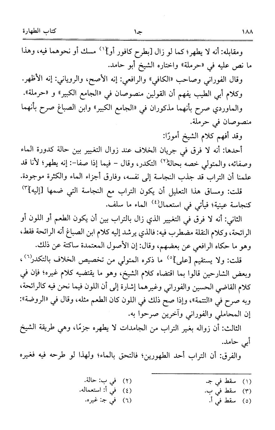 وصفائه, والمتولي خصه بحالة التكدر, وقال – فيما إذا صفا-: إنه يطهر؛ لأنا قد