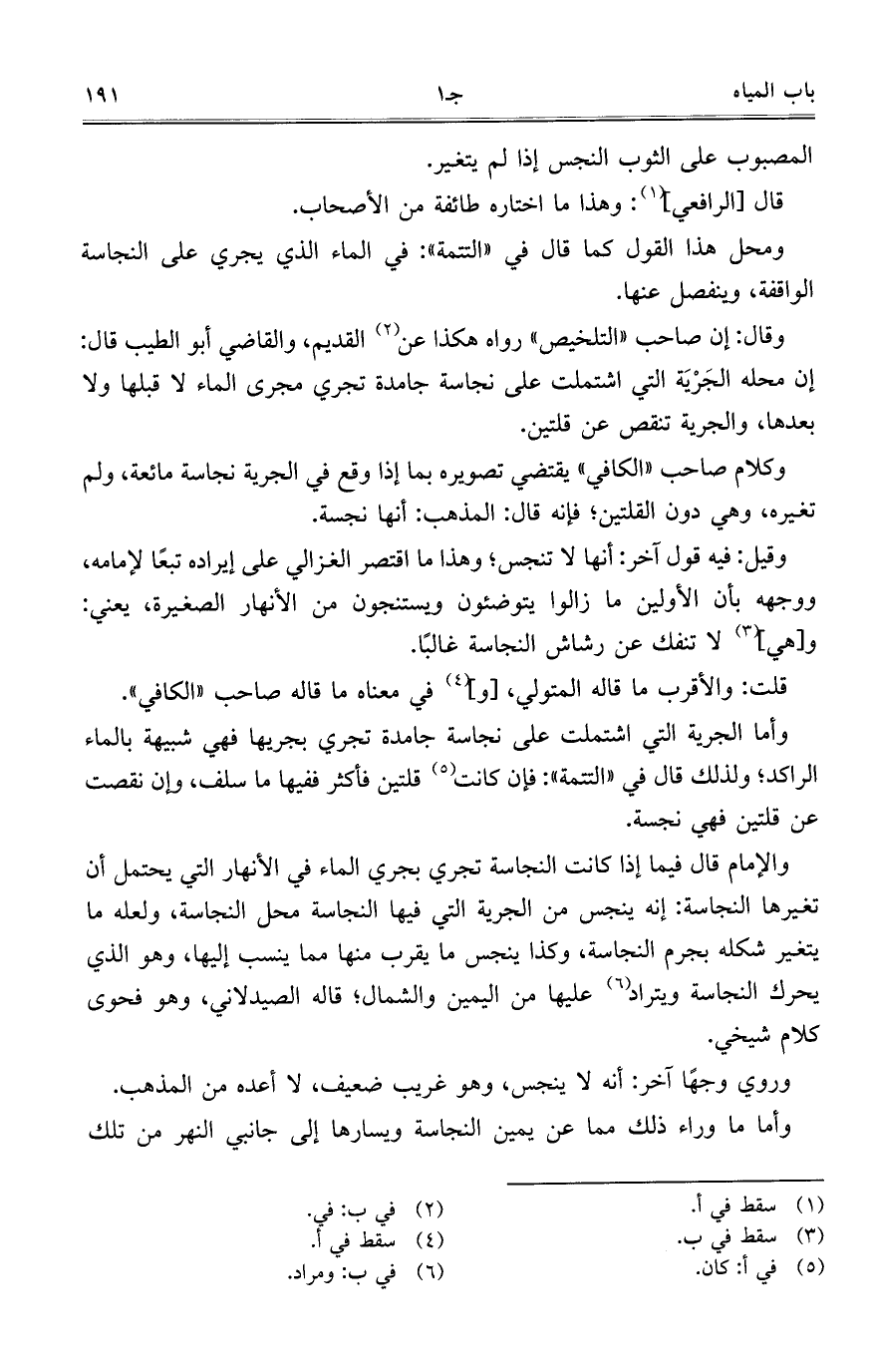 والإمام قال فيما إذا كانت النجاسة تجري بجري الماء في الأنهار التي يحتمل أن