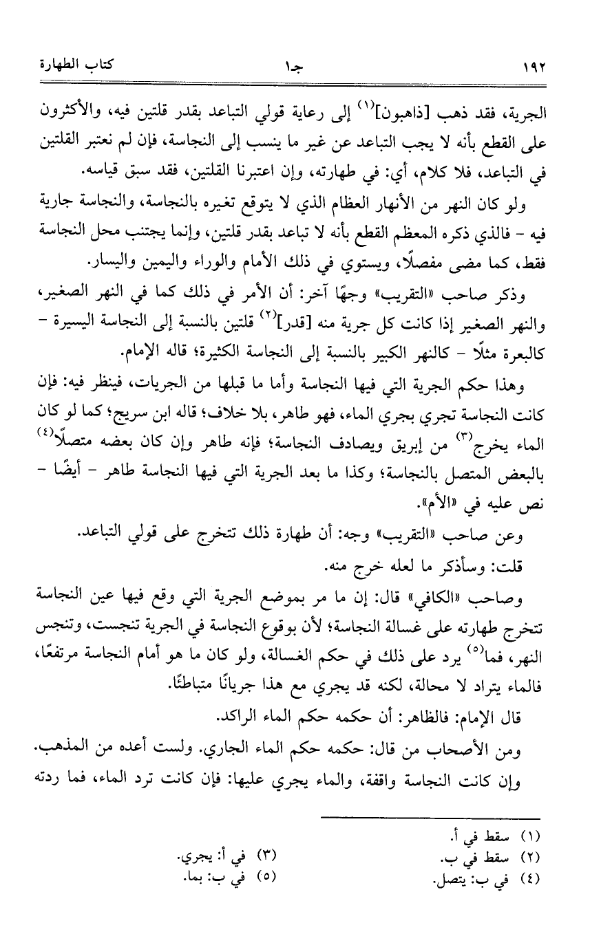 الجرية، فقد ذهب [ذاهبون] إلى رعاية قولي التباعد بقدر قلتين فيه، والأكثرون