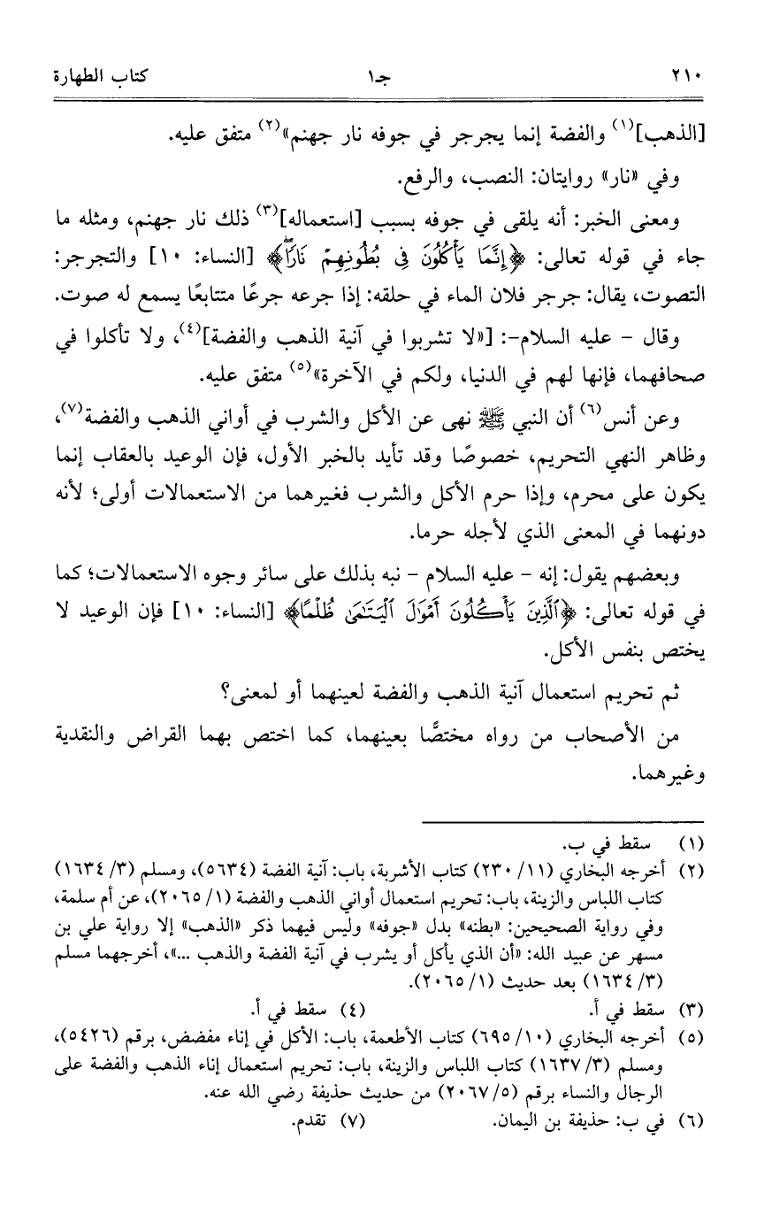 [الذهب] والفضة إنما يجرجر في جوفه نار جهنم" متفق عليه.