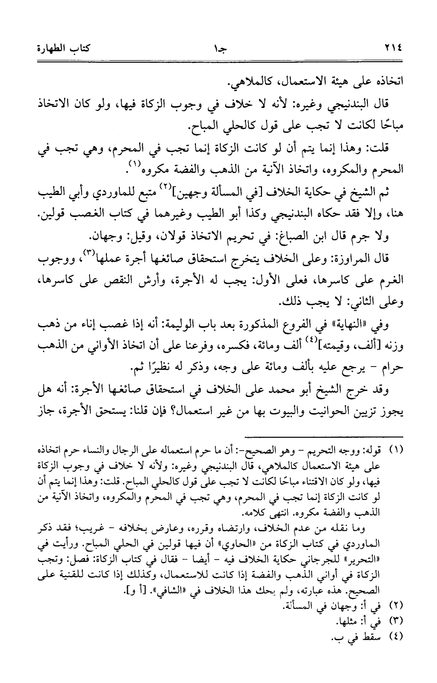 المحرم والمكروه، واتخاذ الآنية من الذهب والفضة مكروه.
