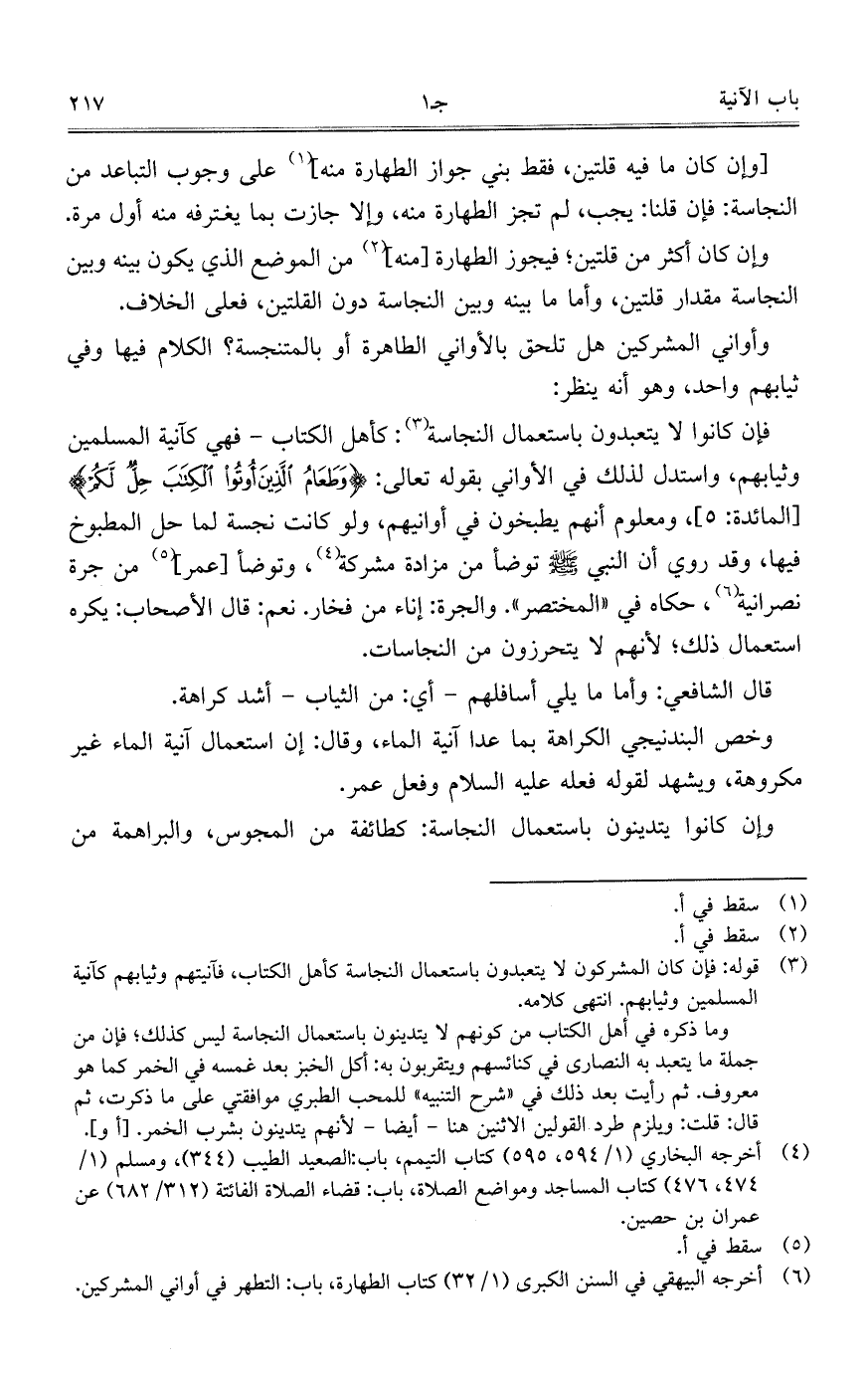 وأواني المشركين هل تلحق بالأواني الطاهرة او بالمتنجسة؟ الكلام فيها وفي
