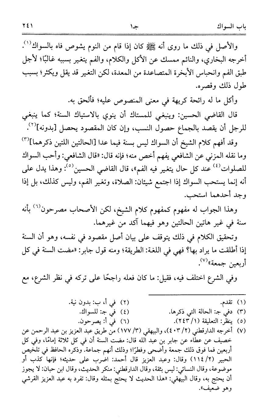 قال القاضي الحسين: وينبغي للمستاك أن ينوي بالاستياك السنة؛ كما ينبغي