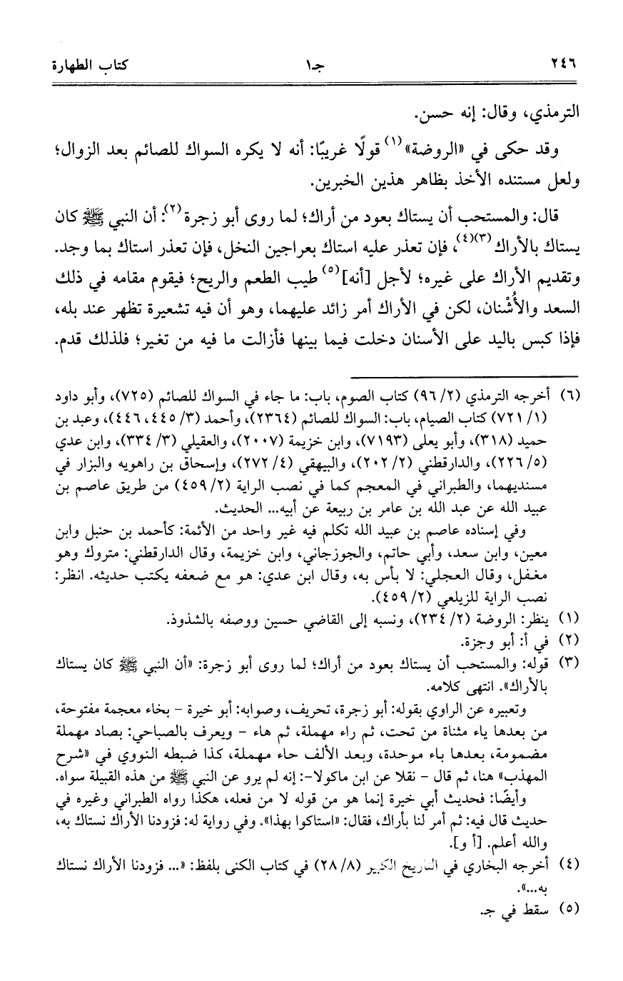 وتقديم الأراك على غيره؛ [لأجل أنه] طيب الطعم والريح؛ فيقوم مقامه في ذلك