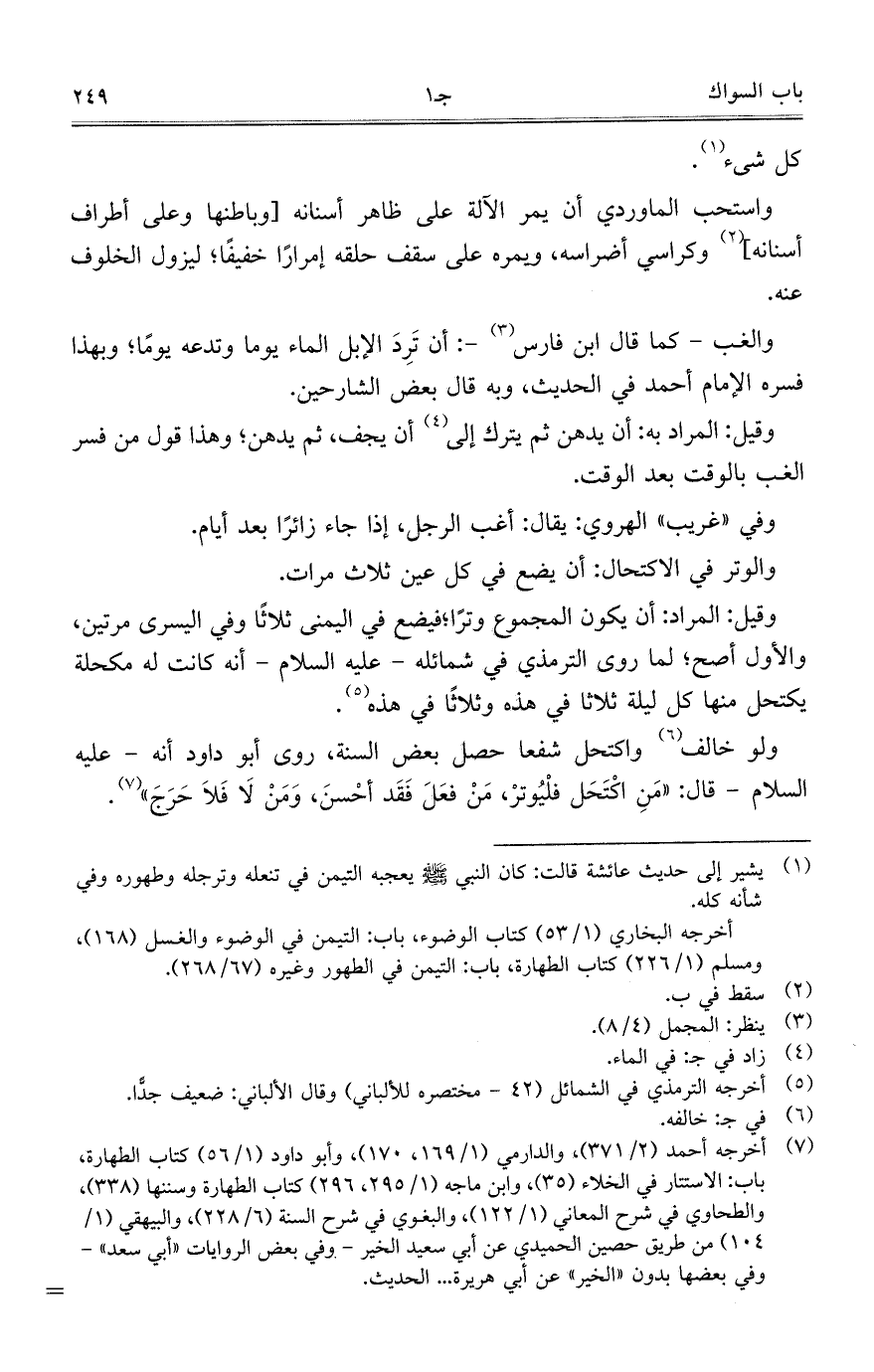 وقيل: المرادبه: أن يدهن ثم يترك على أن يجف، ثم يدهن؛ وهذا قول من فسر