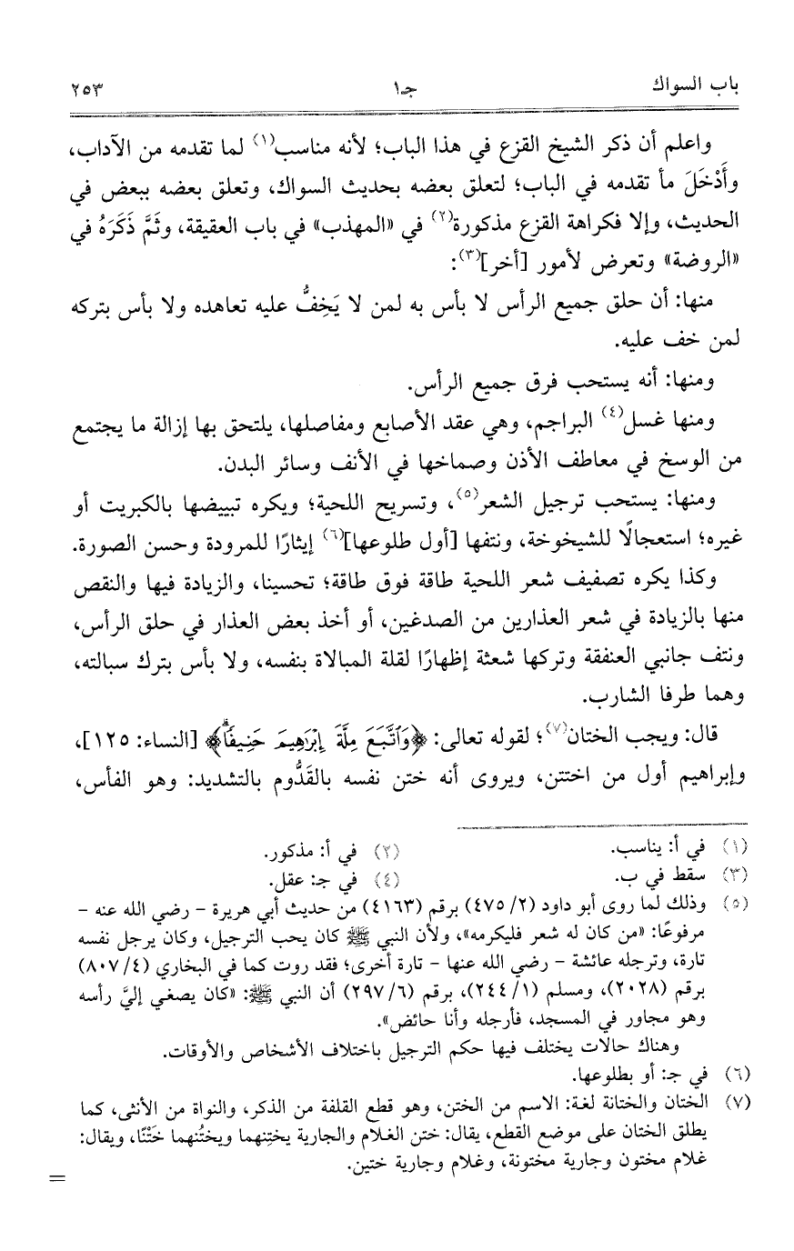 ونتف جانبي العنفقة وتركها شعثة إظهارا لقلة المبالاة بنفسه, ولا بأس بترك سبالته,