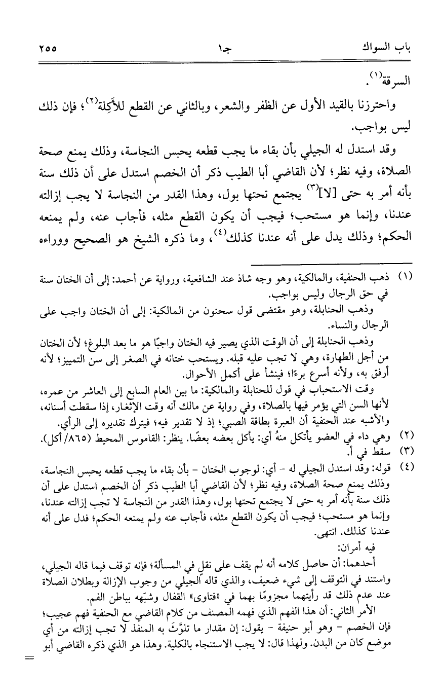 وقد استدل له الجيلي بأن بقاء ما يجب قطعه يحبس النجاسة, وذلك يمنع صحة