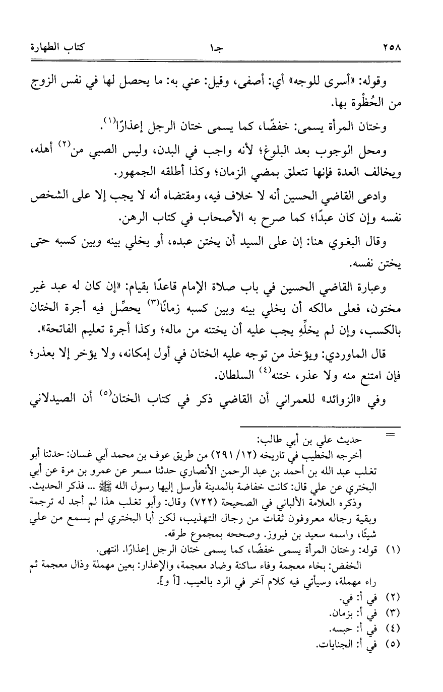 وفي "الزوائد" للعمراني أن القاضي ذكر في كتاب الختان أن الصيدلاني