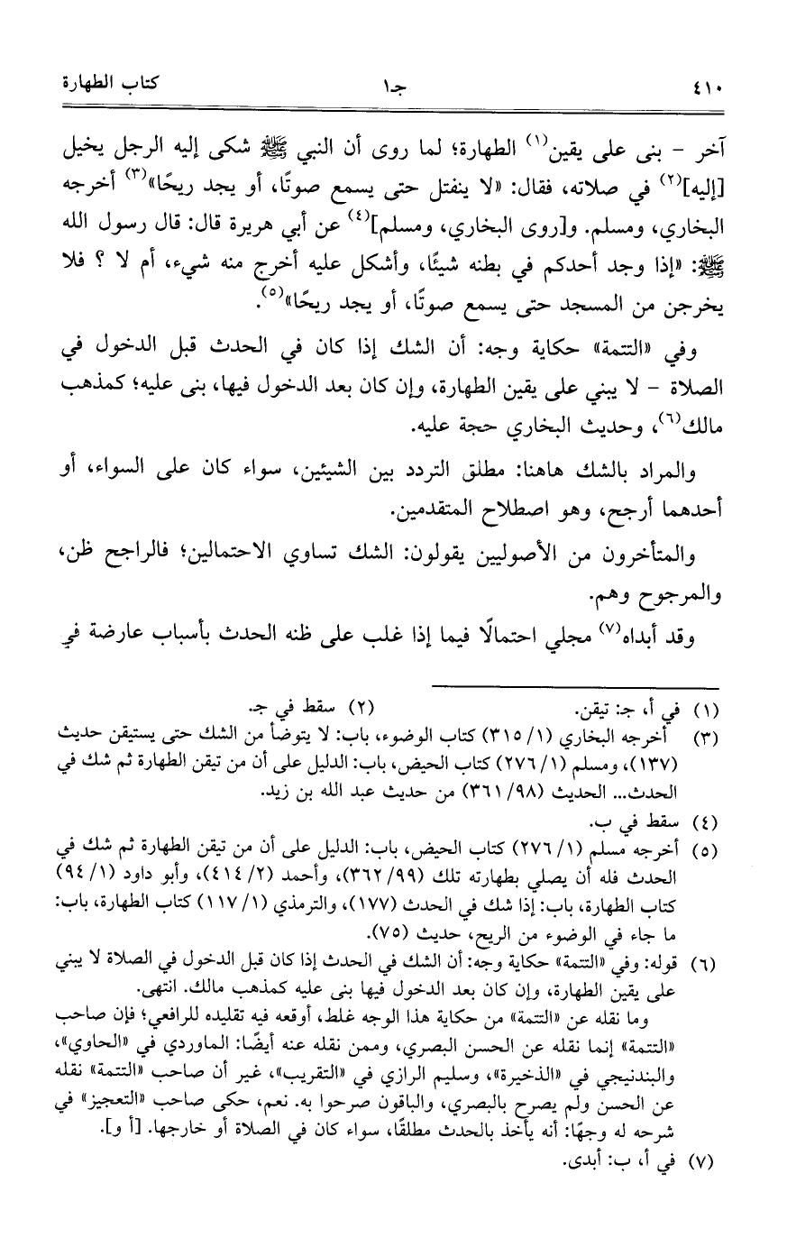 آخر – بنى على يقين الطهارة؛ لما روى أن النبي صلى الله عليه وسلم شكى إليه الرجل يخيل