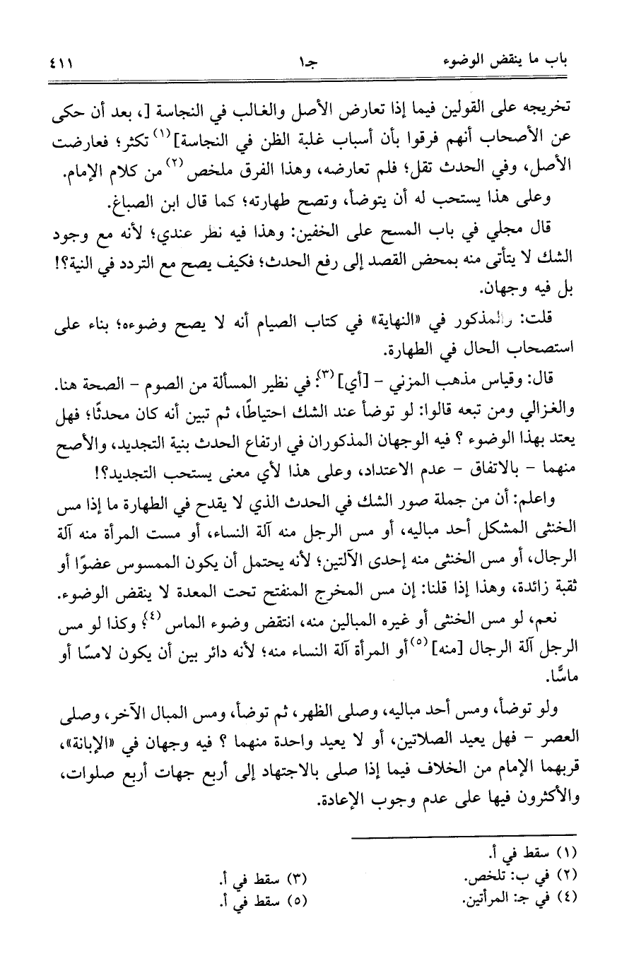 قال مجلي في باب المسح على الخفين: وهذا فيه نظر عندي؛ لأنه مع وجود