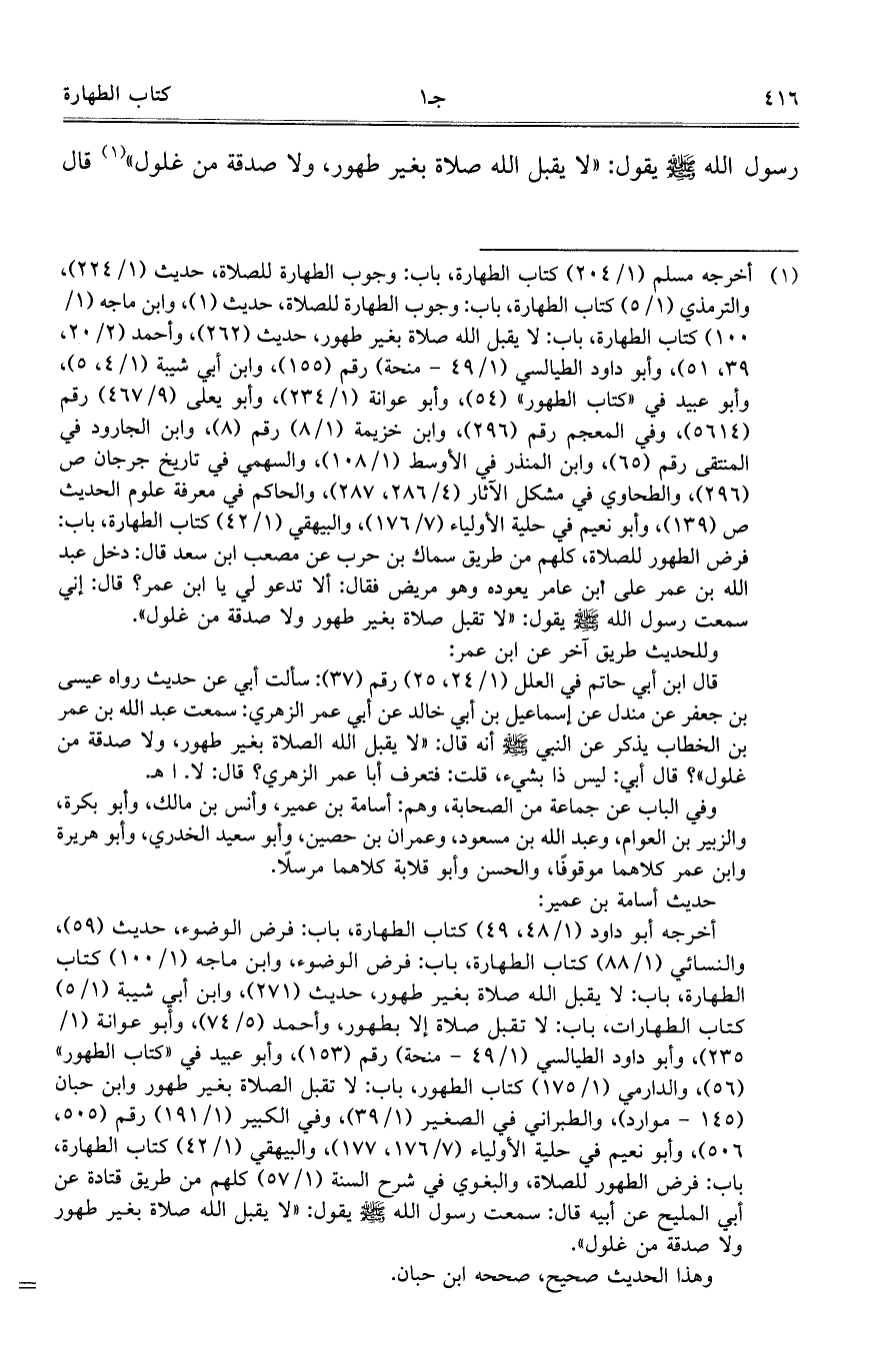 رسول الله صلى الله عليه وسلم يقول:"لا يقبل الله صلاة بغير طهور، ولا صدقة من غلول" قال